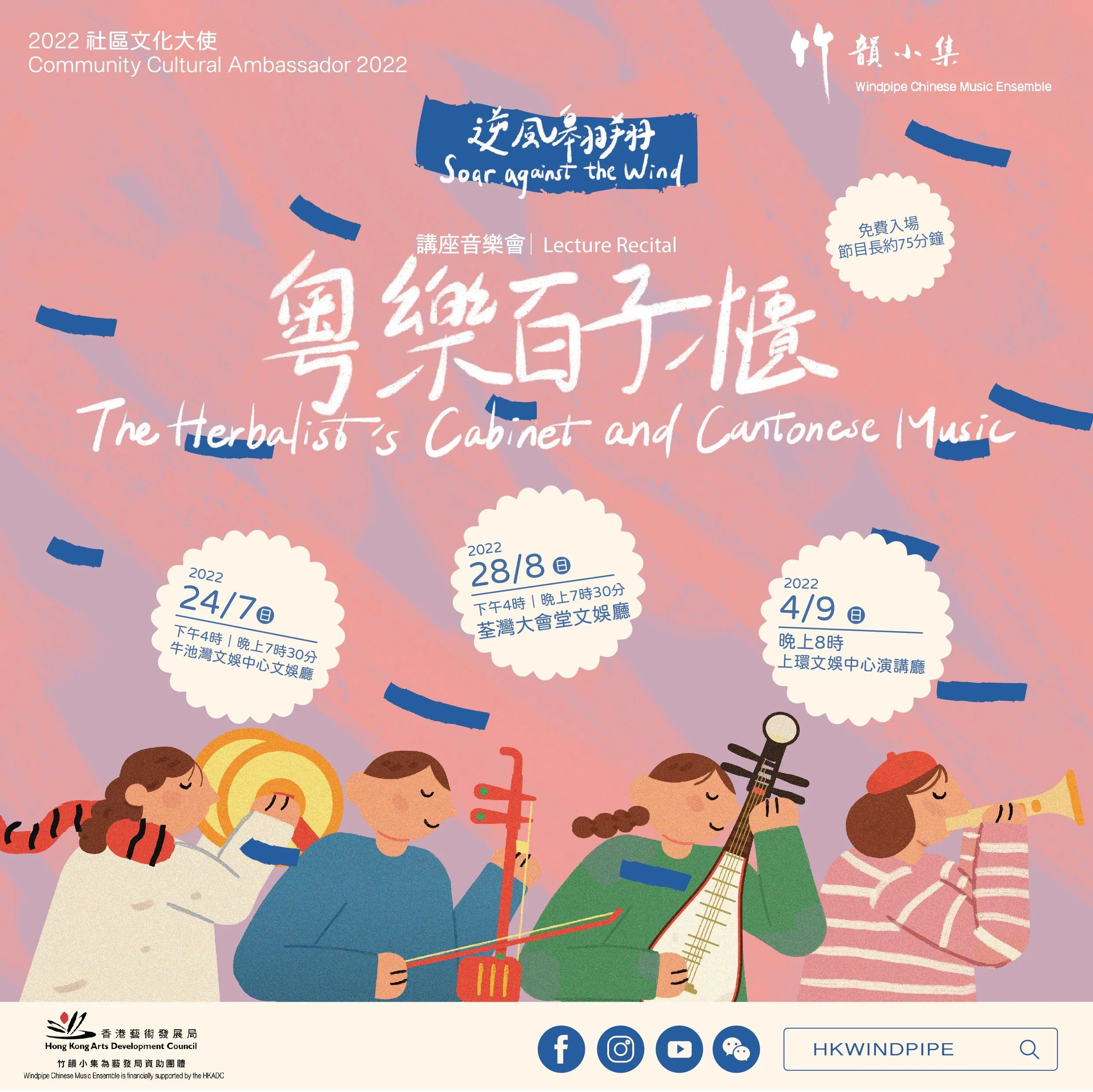 古籍《樂記》記載:「樂以治心,血氣以平」,明確了音樂的醫學價值。講座音樂會「粵樂百子櫃」在欣賞竹韻小集演奏粵樂百年經典之餘,更通過註冊中醫師介紹嶺南氣候與水土的中西醫養生保健方法,讓觀眾認識疫情之下身心靈健康的重要性。
