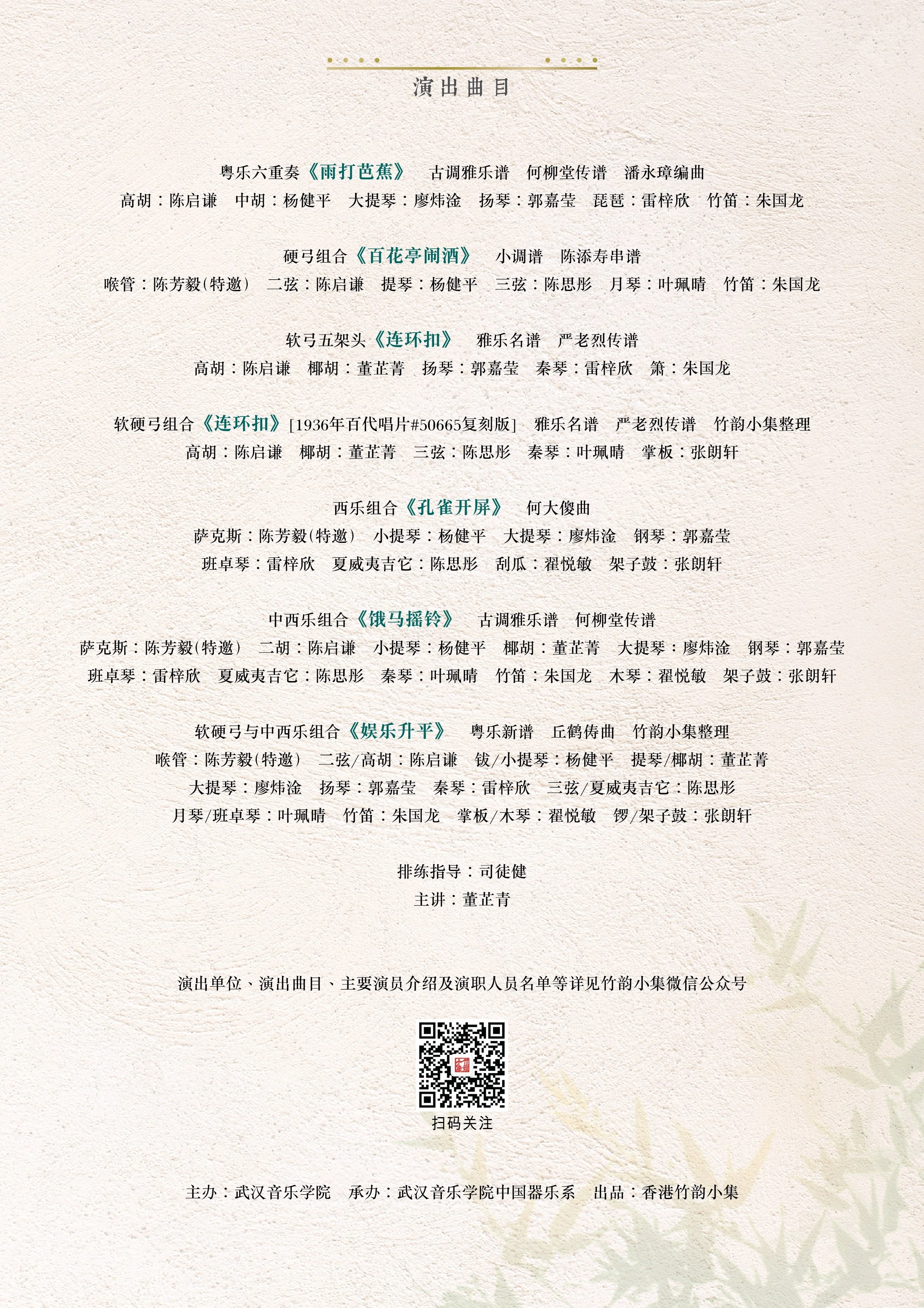 香港竹韻小集與武漢音樂學院中國器樂系共同呈獻
