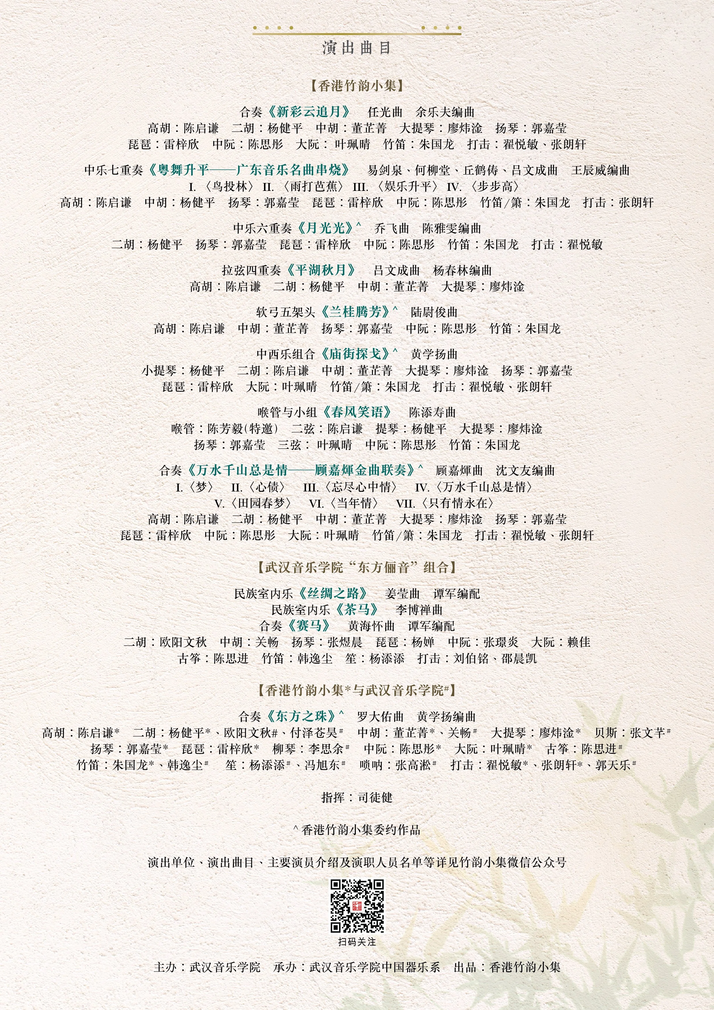 香港竹韻小集與武漢音樂學院中國器樂系共同呈獻